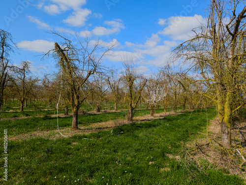 Fleurissement précoce dans ce vieux verger de plaine, CEA, Alsace, Grand Est, France