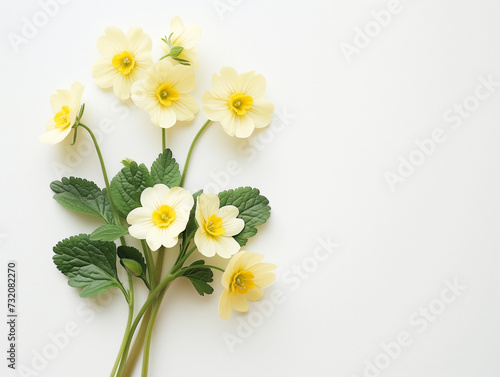 Fleurs sur fond blanc : vision minimaliste d'une primevère de printemps