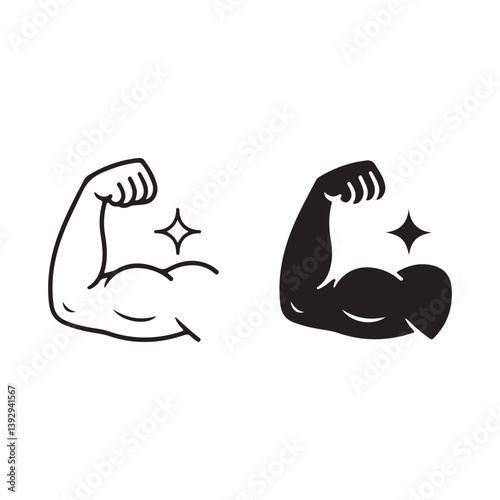 Flexed arm icons with power spark