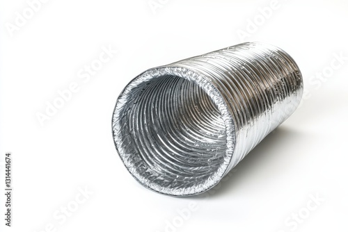 Flexible duct with shiny metallic finish isolated on a clean white background showcasing sharp details