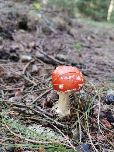 mushroom, toadstool, fly agaric, forest, autumn, nature, red, mushroom, toxic, poison, white, grass, forest, season, cap, macro, plant