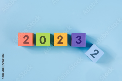 2023, new year, celebration, beginning, cube, calendar, happy, background, blue background, plan, exchange, 2022, business, celebrate, challenge, chance, change, colourful, concept, copy space, countdown, date, end, event, future, holiday, live, new, number, progress, reboot, start, symbol, time, turn, vacation, year