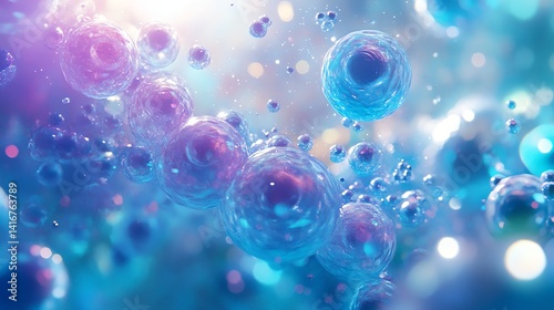 Floating Cells Abstract Art with Blue and Purple Hues and Bokeh