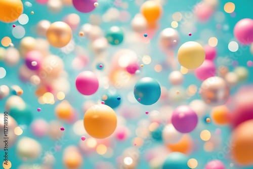 colourful, sphere, floating, vibrant, blue, background, abstract, celebration, decoration, three-dimensional, bubble, round, shape, festive, joy, cheerful, fantasy, texture, pattern, digital, art, light, bright, bokeh, blur, motion, dynamic, many-coloured, space, fun, beauty, creative, play, airy, levitation, buoyant, effervescent, atmosphere, image, copy space, empty space