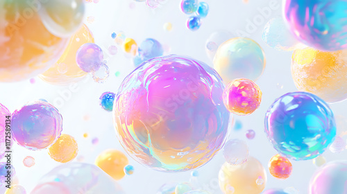Floating Iridescent Bubbles Abstract Art Pastel Rainbow Colors Dreamy Background