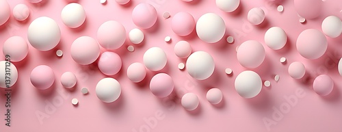 Floating Pink and White Spheres on Pastel Background - Abstract Design