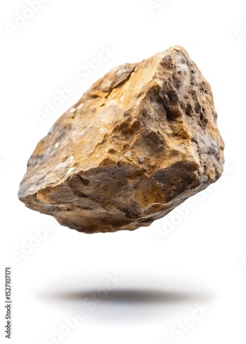 Floating Rock with Shadow Isolated on White Background Stock Image
