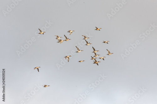 Flock of American wigeon