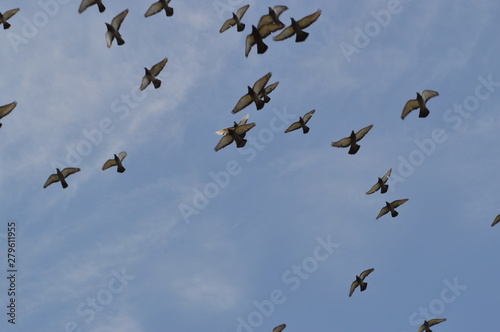 flock of birds on blue sky