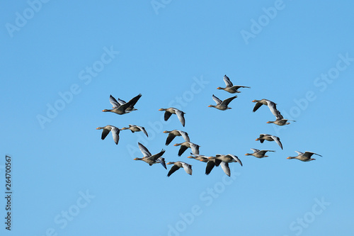 Flock of Greylag geese, Anser anser, Germany, Europe