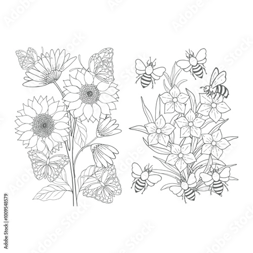 Flora line art coloring pages for decoration