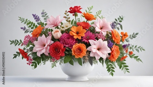 Floral arrangement isolated on white background, flowers, single stem flowers, fresh flowers