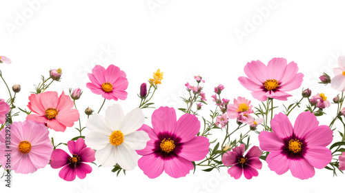 cosmos, flower, blossom, floral, arrangement, border, decorative, design, cut-out, transparent, pink, purple, yellow, white, stem, botany, nature, isolated, bloom