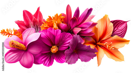 Floral Arrangement with Vibrant Colorful Blossoms, cut out transparent