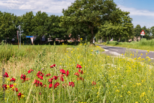 Floral borders with wild flowers along the road to increase biodoversity in The Netherlands