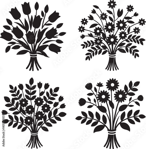 Floral bouquet silhouette vector illustration isolated On Transparent Background