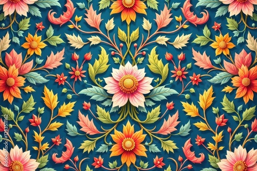 Floral damask with leaves and vines, seamless repeat, floral patterns, leafy motifs, vector floral damask