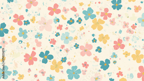 Floral Delight: A cheerful, whimsical pattern of pastel-colored flowers scattered across a soft, warm background. Perfect for adding a touch of spring and happiness to your designs.