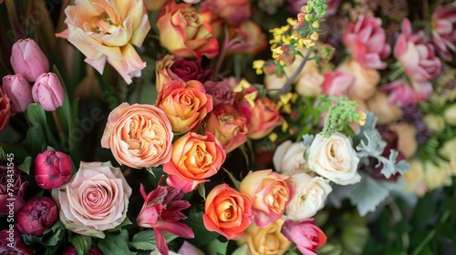 Floral display featuring a mix of roses and tulips