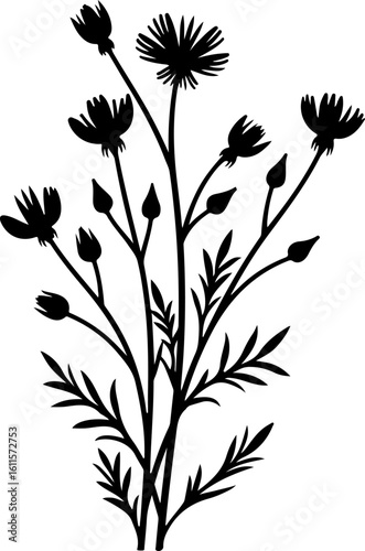 floral, flower, wildflower, silhouette, black-and-white, botanical, nature, garden, spring, bloom, flower petals, stem, leaf, illustration, artwork, decorative, natural, elegant, vintage, minimalist, foliage, flora, plant, artistic, hand-drawn, field flowers, rustic, organic, detailed, monochrome, floral pattern, meadow, bouquet, romantic, simple, stylised, serene
