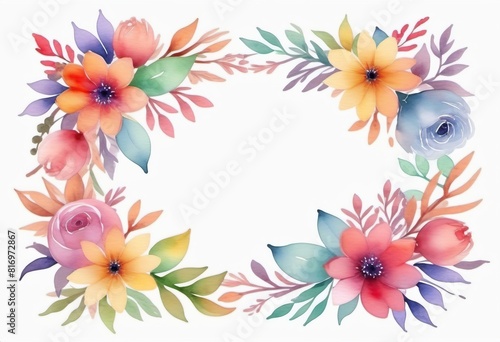 Floral frame watercolor drawing, template, copy space, place for text.