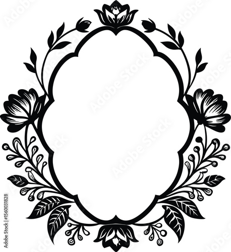 floral, chaplet, frame, vector, silhouette, decorative, leaf, black, vintage, botanical, circle, elegant, nature, hand-drawn, classic, ornamental, symmetric, stylish, plant, foliage, border, invitation, antique, outline