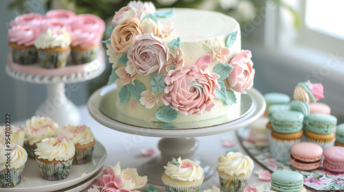 Floral Garden Cake: Elegant Pastel Cake with Buttercream Flowers and Matching Cupcakes
