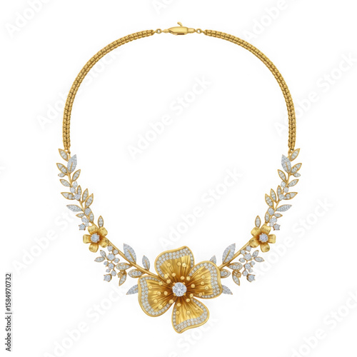 Floral gold diamond necklace jewelry fashion isolated on transparent background