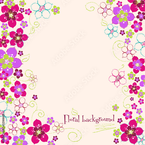 flower, pattern, floral, texture, effect, bright, beautiful, complexity, watercolor, drawn, drawing, vignetting, vibrant, pink, curl, background, space, green, leaf, summer, gentle