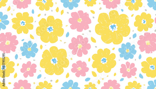 Floral pattern. Seamless spring flower crayon hand drawn abstract vector. Yellow brush background. Small pencil plant. Pastel pattern design. Organic floral illustration texture.children, brush, chalk