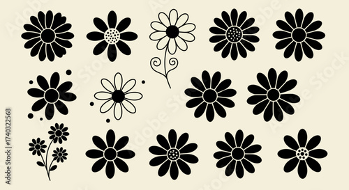 flower, daisy, floral, pattern, spring, vector, design, nature, botanical, blossom, summer, garden, background, plant, illustration, leaf, drawing, decoration, silhouette, cute, black, graphic, simple, art, wildflower, element, bloom, isolated, retro, meadow, monochrome, outline, beauty, decorative, vintage, elegant, artistic, print