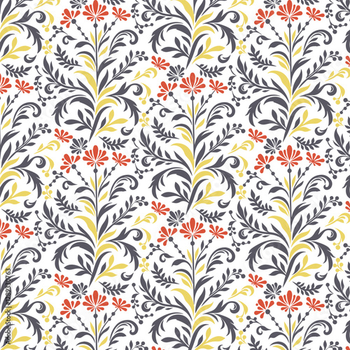 floral pattern with delicate leaf details and seamless nature inspired ornamental elements for fabric printing