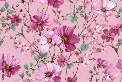 Floral pattern with pink flowers on a soft pastel background ideal for fabric, wallpaper, and design projects