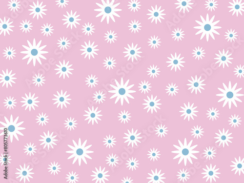 Floral pattern with white flowers on a light pink background, stock illustration.