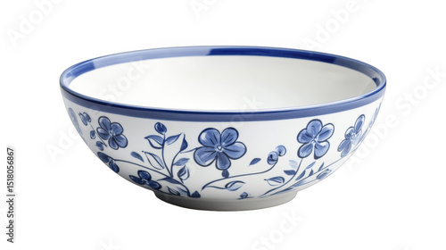 Floral patterned ceramic bowl on a transparent background, PNG image, PNG file.