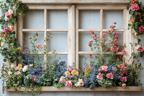 floral arrangement, window frame, flower, rose, rustic, spring flower, garden, blooming, botanical, pink rose, white rose, floral pattern
