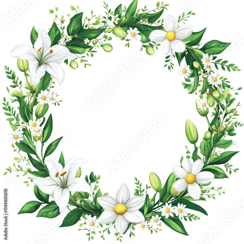easter, chaplet, floral, lily, daisy, spring, branch, fruitbody, flower, decoration, seasonal, nature, fresh, vibrant, celebration, springtime, holiday, greenery, rustic, floral arrangement, cheerful, festive, joyful, hand-made, blooming, bright