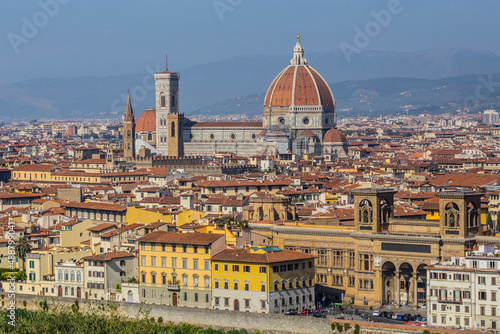 Florence Duomo aerial view from Michelangelo Square in Florence, Italy