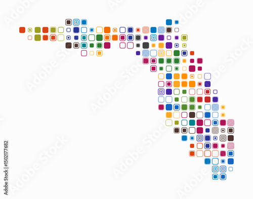 Florida, shape of the state build of colored cells. Digital style map of the Florida on white background. Large size rounded square blocks. Vibrant vector illustration.