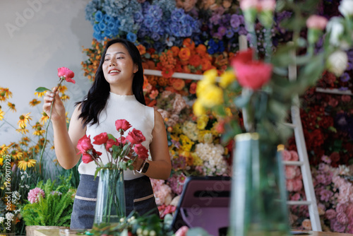 florist, flower, shop, arranging, rose, arrangement, woman, smiling, small, business, entrepreneur, owner, floral, design, workplace, happy, service, retail, job, professional, creative, beautiful, vase, plant, working, blossom, beauty, work, adult, bloom, lifestyle, delicate, art, cheerful, fresh, charming, colourful, boutique, selling, natural, hand-made, elegant, botanic, craft