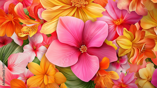 Flower background, vibrant and detailed flower background for a PC with flowers and leaves