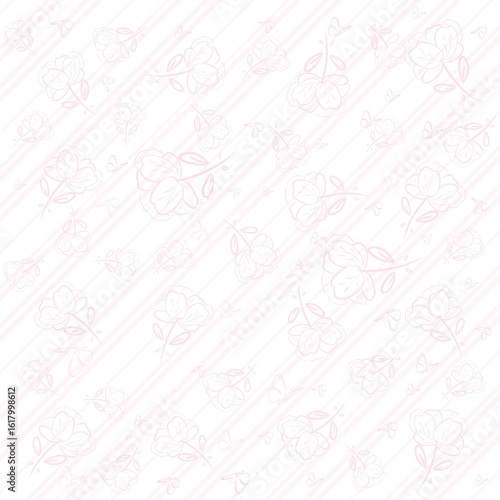 flower, butterfly, pastel pink, background, line art, cartoon style, cute, grid pattern