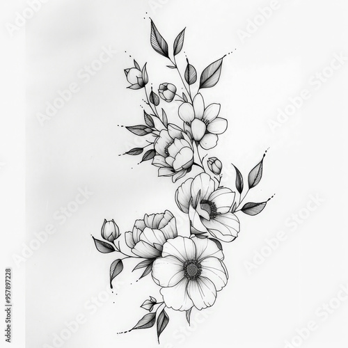 flower, draw, vector, black art, tattoo style, tattoo, floral, illustration, pattern, leaf, nature, vintage, drawing, sketch, plant, design, art, decoration, branch, rose, blossom, element, black, wed