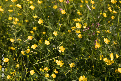 field, flower, flower, spring, background, springtime, landscape, summer, nature, green, meadow, grass, beautiful, plant, season, sunny, garden, day, sky, sun, blue, sunlight, blossom, light, beauty, yellow, scene, bloom