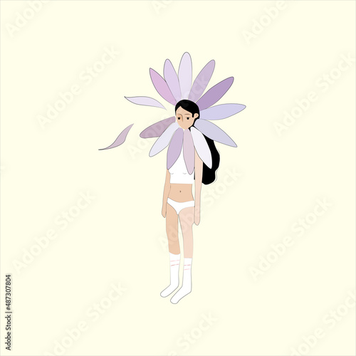 woman, flower, cartoon, illustration, beauty, children, fashion, spring, floral, flower, nature, design, violet, girl, sock