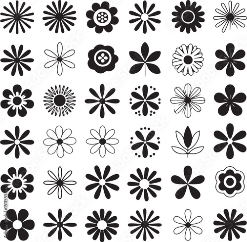 Flower Icon SVG – Simple Botanical Silhouette for Design Use Minimal Floral Symbol – Elegant Vector for Decor and Logos Botanical Icon Bundle – Line Art Flowers for Digital Projects Stylized Bloom