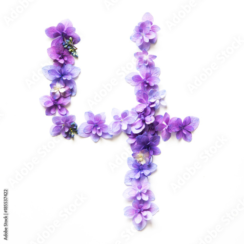 4, flower, number, letter, character, font, figure, lovely, white, nature, floral, plant, text, symbol, natural, beautiful, fresh, decoration, bright, beauty, signs, season, hydrangea, fresh flower, white background