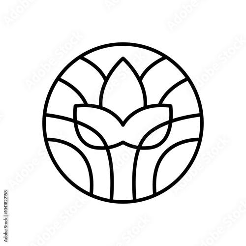 Flower round line logo aesthetics. Emblem plant in circle linear style. Vector abstract badge for design of natural products, flower shop, cosmetics, ecology concepts, health, spa, yoga center