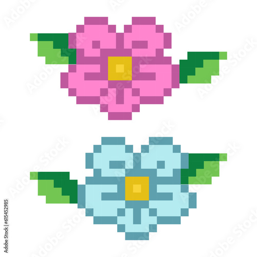 Flower with leave pixel art, pixel flower icon on white background