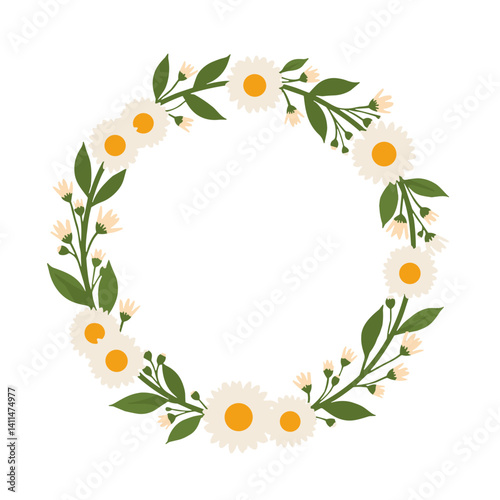 chaplet, flower, daisy, greenery, floral, design, decoration, circle, nature, botanical, spring, summer, arrangement, home decor, wedding, celebration, background, bright, fresh, seasonal, vibrant, artistic, illustration, decorative, natural, joyful, cheerful, femininity, elegance, beauty, decor, gift, minimalism, blossoming, flora, oneness, calmness, peace, handcraft, craft, artwork, garden, happy, pastoral, delicate, harmonious, creative